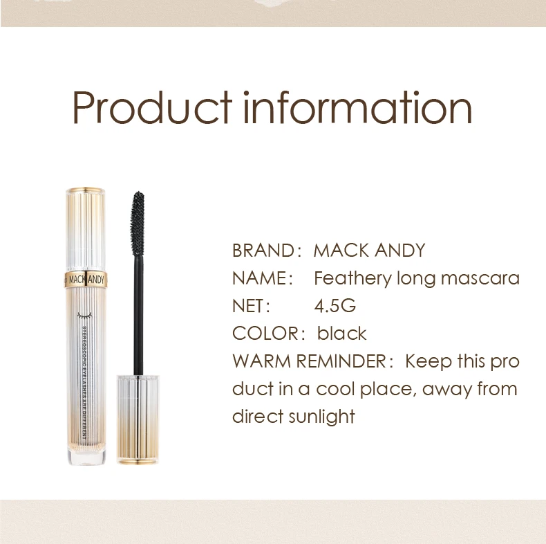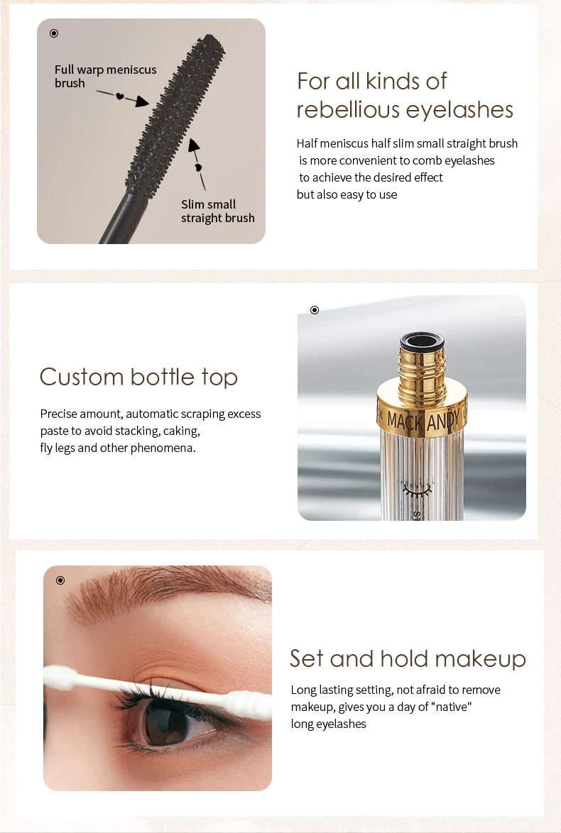 MACKANDY Waterproof 3D Lengthening Mascara Black Eyelash Extension Eye Lashs Brush Long-Wearing Silk Mascara Cosmetics Gift