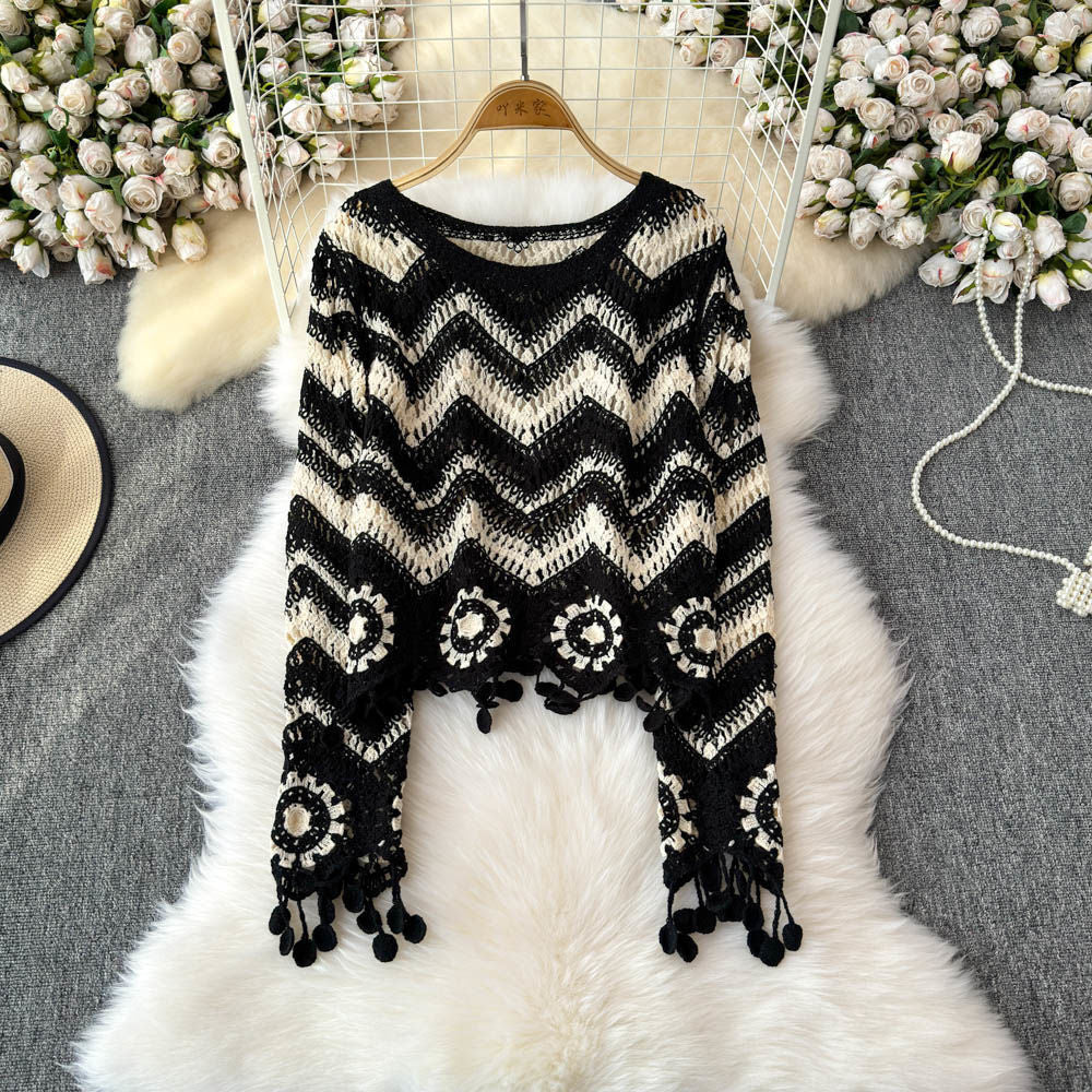 Product information: Pattern: Plaid Color: Black, apricot, Brown, Brown Beige Size: free size Style: slim fit Popular elements: hollow out Style: pullover Fabric name: Polyester Sleeve type: ruffled sleeves Sleeve length: long sleeve Note: 1. Asian sizes are 1 to 2 sizes smaller than European and American people. Choose the...